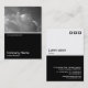 Un modèle de carte de visite avec une moitié inférieure noire bordée de blanc. Le design avant comprend une photo ou une oeuvre d'art dans la partie supérieure. Le même thème est répété à l'arrière sans l'image, permettant la place pour d'autres détails et une personnalisation plus poussée. Les trois motifs carré utilisés comme élément décoratif sur le dos proviennent d'une des polices d'image utiles de Zazzle et peuvent être utilisés comme élément décoratif ou remplacés par votre propre logo ou décoration.