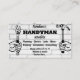 Design élégant et lisible Handyman Services Carte de visite. Pour plus de matériel marketing de mise en correspondance, de conception personnalisée ou de demande de logo, veuillez me contacter à manunamankaya@gmail.com et je répondrai dans les 24 heures. Pour l'expédition, cardstock demande et prix contactez Zazzle directement.