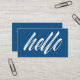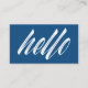 Faites une impression accessible lorsque vous vous connectez avec des cartes de visite personnalisés avec le mot "bonjour" dans une police de caractères blanche et cursive moderne en bleu. Le dossier du carte de visite présente votre nom, titre de poste/spécialité/entreprise, site Web et les coordonnées en blanc sur bleu. Remplacez l'exemple de texte par le vôtre dans la barre latérale. Pour voir le design de typographie moderne sur d'autres articles, cliquez sur le lien "Rocklawn Arts".