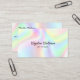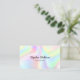 Holographic style business cards with QR code and social media icons, a bold and versatile option for professionals seeking a high-impact way to connect and stand out. Featuring a vibrant pastel faux holographic effect swirl background, this double-sided design blends playful elegance with modern functionality, perfect for entrepreneurs, freelancers, creatives, and service providers across all industries. The front layout showcases your business name and location or slogan in stylish fonts over a soft, iridescent color palette that instantly grabs attention. The reverse side includes editable text for your details, and Facebook, Instagram and TikTok handle, along with a scannable QR code for instant digital access. Whether you're in beauty, fashion, wellness, tech, or consulting, this customizable design can be tailored to reflect your brand identity while offering a sleek and memorable presentation. Ideal for networking events, client meetings, pop-up shops, and promotional giveaways, this eye-catching holographic business card helps you leave a lasting impression in any industry.