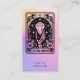 Un carte de visite de guérisseur de cristal à thème de tarot unique avec cristal, floraux et main squelette.