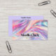 Ce carte de visite moderne et irisé présente votre nom ou nom d'entreprise dans la typographie serif contemporaine contre un arrière - plan holographique branché. Une excellente façon de montrer que vous êtes conscient des nouvelles tendances et se démarquer dans l'esprit de vos clients. Parfait pour tout professionnel comme un maquilleur, coiffeur, coiffeur, spécialiste des ongles, propriétaire de salon de beauté, esthéticienne, et plus encore. Vous pouvez customiser sur le devant avec votre nom, titre ou adresse de site, et inclure des détails d'affaires comme l'adresse du site Web, les comptes de médias sociaux, les icônes de médias sociaux (Facebook, Instagram), un code QR scannable, et du texte supplémentaire comme "connectez-vous avec nous" ou "scanner pour réserver rendez-vous" au verso.