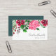 Un design carte de visite floral élégant pour les stylistes de marques, les commerçants, les fleuristes, les planificateurs mariages et évènements, ou toute autre profession dispose de fleurs d'hydrangée aquarelle dans des tons vibrants de rose et de violet, accentué de feuilles et feuillage vert luxuriant. Personnalisez avec deux lignes de texte personnalisé sur le devant, et ajoutez vos coordonnées à l'arrière en lettres blanches modernes sur un arrière - plan vert jasper ton bijou.