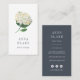 Les élégants cartes de visite verticaux pour fleuristes, designers floraux, wedding planners ou autres professionnels mariages présentent une illustration de fleurs d'hydrangée en vert et blanc, avec votre nom ou nom d'entreprise en dessous. Ajoutez vos coordonnées complètes au verso en blanc sur un arrière - plan bleu fumée contrastant. Comprend trois icônes de médias sociaux et un champ de modèle pour votre gestionnaire de médias sociaux.