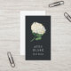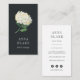 Les élégants cartes de visite verticaux pour fleuristes, designers floraux, wedding planners ou autres professionnels mariages présentent une illustration en vert et blanc de l'aquarelle hydrangée, avec votre nom ou nom d'entreprise en dessous, sur un arrière - plan noir riche et étonnant. Ajoutez vos coordonnées complètes sur le côté inverse en noir doux contrastant sur blanc. Comprend trois icônes de médias sociaux et un champ de modèle pour votre gestionnaire de médias sociaux.