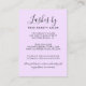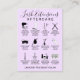 Ces cartes simples et modernes d'extension d'cils sont parfaites pour tout technicien de foudre, esthétique ou salon de beauté. Il comporte des symboles et des instructions d'icônes dessinés à la main avec toutes les informations de votre entreprise à l'arrière. Il est décoré dans des tons simples, noir, violet lilas pastel et blanc. Un design minimaliste, élégant et professionnel, idéal pour impressionner vos clients. ***REMARQUE DE CONCEPTION IMPORTANTE : Pour toute demande de conception personnalisée comme les produits correspondants, les modifications de couleur, les modifications de placement ou toute autre demande de modification, veuillez envoyer un message au concepteur. Vous pouvez même soumettre une demande pour un design entièrement personnalisé et nouveau.