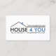 Un carte de visite immobilier à deux côtés. Le carte de visite de l'immobilier montre une ligne noire qui forme un logo maison avec le nom de l'entreprise immobilière et les coordonnées. Les couleurs principales du carte de visite immobilier sont le blanc, le noir et le bleu. Ce design conviendra parfaitement à un constructeur ainsi qu'à des agences et agents immobiliers.