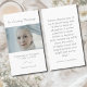 Simple and elegant funeral prayer card featuring clean script typography, a photo template, a subtle scroll line accent and heart felt bereavement verse in lovely soft gray color scheme. Designed for memorial services, sympathy keepsakes, remembrance cards, and celebration of life events. Timeless minimalist memorial stationery. You can find more elegant prayer cards in the Elegant Memorial Keepsake Prayer Card collection in The Gathering Designs store.
