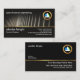 Au verso, un thème semblable de conception est employé. Au coin haut droit est le logo familier d'or de faux. Votre nom prestigieux est à l'extrême inverse de la carte avec une option de slogan juste ci-dessous. Dans la colonne noire avec la ligne d'or, reposez les détails de raison sociale et de contact.