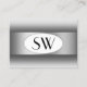 Carte De Visite Initiales gris et blanc Ombre Argent Oval Frame