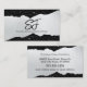 Ce carte de visite professionnel sur mesure présente un design noir et argent glamour. L'arrière - plan est doté d'un motif texturé de style feuille d'argent. Les parties supérieure et inférieure présentent une texture noire abstraite et luxueuse avec des accents de parties scintillant. Des exemples d'initiales de monogramme sont imprimés au centre dans une police de script élégante, suivie d'un nom et d'un titre de travail. Le dos du carte de visite contient les coordonnées d'un arrière - plan argenté correspondant.