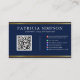 Carte De Visite Ink Blue & Gold Edge Modern QR Code Template