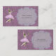 Cartes de visite comportant une illustration vintage d'une ballerine rose avec un rétro arrière - plan de style de papier peint.
