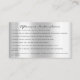 Carte De Visite Instructions de suivi Lash Silver Grey Drivers Ros