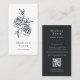 Les cartes de visite floraux chic minimalistes au format vertical unique présentent votre nom ou nom d'entreprise en bas, surmonté d'une illustration florale riche et épais de noir foncé. Ajoutez vos coordonnées complètes à l'arrière en blanc lors de l'appariement hors-noir. Inclut un code QR personnalisable pour faciliter la connexion des clients et des clients.