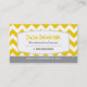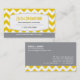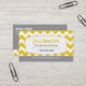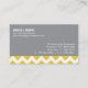 Un motif jaune et blanc de chevron est dominant sur cette carte qui comporte un cadre de enflement pour tenir l'information d'affaires. Un panneau gris sur le fond contient un URL de site Web ou n'importe quelle autre information. D'autres copies de l'information de contact et d'affaires sur le dos sur un fond gris accentué par une bande de chevron. Une carte souple pour des conseillers, entreprises créatives, entreprises à domicile plus beaucoup plus. Disponible dans des couleurs alternatives.