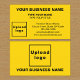 Carte de visite que vous pouvez customiser pour vos clients ou clients de trouver facilement votre adresse professionnelle et les coordonnées de votre contact. Les couleurs et le style de conception sont des textes noirs sur les textes arrière - plans jaunes et centrés de votre nom d'entreprise, votre nom et votre titre. Pour customiser ce carte de visite, téléchargez votre logo d'entreprise, tapez votre nom d'entreprise, votre nom, votre titre, votre adresse, votre numéro de téléphone, votre courriel et votre site Web ou votre page de médias sociaux professionnels. Après avoir téléchargé le logo et tapé des textes, veuillez vérifier l'apparence sur les côtés avant et arrière. Si l'apparence vous plaît, vous pouvez passer votre commande maintenant. Si vous avez besoin de redimensionner et déplacer le logo et les textes pour s'adapter à ce carte de visite, s'il vous plaît changer dans l'outil de conception. Vous pouvez également effectuer d'autres modifications dans l'outil de conception en fonction de l'apparence de ce carte de visite que vous préférez, comme changer la couleur arrière - plan, la couleur de police et le style de police.