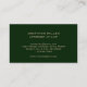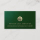 Faites une déclaration dans le monde juridique avec notre Carte de visite juridique professionnel. Conçu pour des cabinets d'avocats et des avocats, ce carte de visite est doté d'un arrière - plan en cuir vert avec un emblème en or brossé sur le devant. Customisez-le avec le nom, l'adresse et les coordonnées de votre entreprise dans la typographie classique d'or. Impressionnez vos clients et collègues avec ce carte de visite sophistiqué.