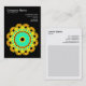 Modèle de carte de visite avec un motif kaléidoscopique attrayant sur le devant. Nom de l'entreprise, type d'entreprise et adresse sur l'avant avec nom, titre de l'emploi, téléphonie, adresses Web et e-mail sur l'arrière, avec une disposition similaire, sauf qu'il y a une zone gris pâle carré destinée comme zone utile pour écrire des notes au lieu du motif avant. Cette carte peut également être customisée.