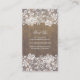 Carte de visite rustique de pays avec du bois de grange, des pots de maçon, des lumières de ficelle, et la dentelle