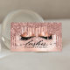 Moderne, chic, tendance Rose Gold Lashes carte de visite. Design dispose de gouttes de parties scintillant faux et ensemble de cils avec rose or faux feuille, brillant arrière - plan parties scintillant et script de typographie. Personnalisez avec votre nom sur le devant et les coordonnées sur le dos.