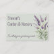 Carte de visite double face. Faites une très belle déclaration avec ce carte de visite. Décoré de lavande aquarelle dans les tons mauve et vert sauge sur un arrière - plan vert. L'ajout du code QR permet aux clients d'accéder facilement à votre site Web pour obtenir des informations sur les produits et les magasins.