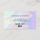 Un superbe design carte de visite de flashs avec une texture imitation holographique colorée, des flashs et une police calligraphique élégante.