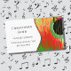 Cours de guitare carte de visite, avec une image abstraite de guitare remplie de couleurs rouge et vert sur un arrière - plan blanc. Le lettrage noir vous permet de customiser avec vos propres informations. Le dos est noir pour compléter les couleurs à l'avant. Idéal pour la publicité et le réseautage de votre entreprise musicale.