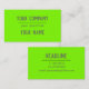 Carte de visite à l'arrière-plan vert fluorescent de couleur solide et au lettrage audacieux. Conception simple et à la mode de bouchon d'Alma. Personnalisez les deux côtés maintenant. Il vient 100 dans un paquet.