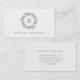 Ces cartes de visite modernes ont une couronne de feuilles vert aquarelle et quelques petits fruits avec votre monogramme au centre, sur un arrière - plan blanc propre.