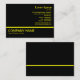 Un modèle design et moderne en carte de visite avec une ligne jaune. Convient à de nombreux types d'entreprises. Le thème s'est poursuivi à l'arrière et a été laissé en blanc. Peut être laissé tel quel ou utilisé pour du texte supplémentaire. Vous pouvez également remplacer le graphique à l'arrière par une photo numérique et en faire une mini carte de visite ou de profil de style carte photo.