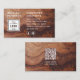 Logo QR Code Construction de menuiserie en bois moderne Carte de visite élégant dispose d'un élégant motif de meubles en bois avec une superposition de votre nom, entreprise ou désignation, coordonnées, médias sociaux et logo sur le devant. Au contraire, ajoutez votre code QR personnalisé. Parfait pour la commercialisation de votre petite entreprise. Personnalisez en modifiant le texte dans la zone de texte fournie. Conçu par ©Evco Studio www.zazzle.com/store/evcostudio