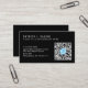 Un carte de visite professionnel noir minimaliste et élégant alliant un code QR scannable lié à votre site web avec votre logo de marque au milieu, et votre nom, titre et coordonnées (tels que email, numéros de téléphone, nom de société et adresse postale) dans une typographie blanche propre, simple et moderne. Entrez facilement votre adresse URL de site Web pour créer automatiquement le code QR et télécharger votre logo (avec un arrière - plan solide et non transparent). Le modèle de logo est dimensionné de manière appropriée pour garder le code QR scannable (vous devez vérifier en scannant votre personnalisation avec votre téléphone avant de commander). Au verso, ajoutez du texte supplémentaire ou laissez vide.