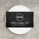 Un logo classique d'une fourchette et d'un couteau encastrés dans un cercle devient l'identité de votre marque professionnelle ou personnelle. Placé sur un arrière - plan rustique en bois noir, ce modèle de carte de visite est parfait pour les chefs, restaurants, dîners, cafés, gourmets, blogueurs gastronomiques, bars, cuisiniers, boulangeries, etc. © 1201AM DESIGNS