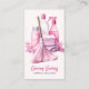 Aquarelle, service de nettoyage de maison moderne carte de visite. Le design comprend la poêle, la bouteille de spray et les produits de nettoyage icônes dans les tons roses sur un arrière - plan rose rousse, votre nom et le titre sur le devant. Personnalisez davantage avec vos coordonnées, le code qr sur votre site web et les détails des médias sociaux au verso. Parfait pour les nettoyeurs domestiques ou industriels.