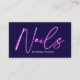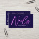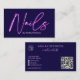 Moderne glam violet neon nails technicien manicurist script logo qr code carte de visite, ajoutez vos médias sociaux, logo et code qr sur bleu marine foncé