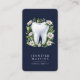 Carte de visite de logo Dentist moderne et élégant, conçu pour créer une impression durable. L'avant comporte deux lignes de texte, ainsi qu'un logo floral sophistiqué placé contre un arrière - plan de la marine. Personnalisez le dos avec un code QR, des poignées de médias sociaux et des coordonnées pour améliorer la connectivité et l'accessibilité. Idéal pour les dentistes, les hygiénistes dentaires et autres professionnels dentaires, ce carte de visite allie professionnalisme et élégance, vous assurant une visibilité dans votre domaine.