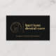 Un dessin d'une dent encastrée dans un cercle crée un logo et une identité uniques sur ce modèle de carte de visite créatif pour les dentistes et les professionnels dentaires. Ce design permet une grande place sur le dos de la carte pour vos détails et informations sur les médias sociaux. Art et design originaux © 1201AM Design Studio | www.1201am, com