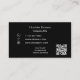 Un arrière - plan noir au texte blanc et doré. Personnalisez et ajoutez le logo de votre entreprise, les initiales monographiques, le prénom et le nom complet sur le devant. Retour : Modèles pour Votre nom, titre, numéro de téléphone, courrier, adresse du site, votre propre code qr à votre site ou compte de médias sociaux.