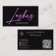 Moderne glam violet neon lashes technicien manicurist script logo qr code carte de visite, ajoutez vos médias sociaux, logo et code qr,