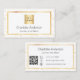 Un arrière - plan blanc chic et un cadre d'or et d'or fantaisie. Personnalisez et ajoutez le logo, le nom et le texte de votre entreprise à l'avant. Retour : Modèles pour votre nom, titre, numéro de téléphone, adresse postale et de site, QR-code à votre site Web ou compte de médias sociaux.