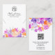 Boucles d'oreille et collier design, bracelets design, minimalistes et modernes, avec marqueurs de trous que vous pouvez déplacer ou supprimer avec élégante main simple lettrage style typographie, tous les textes et couleurs arrière - plans sont personnalisables, ajoutez vos médias sociaux et code QR. Avec une aquarelle fleurie violette, lavande et orange peinte.