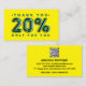 Carte De Visite Logo Merci QRCODE 20%OFF Code remise Jaune