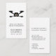 Drone Aerial Photography Logo Carte de visite... Carte de visite photographe aérien de drone avec un logo d'illustration de caméra de drone et un exemple de texte pour le nom d'entreprise, votre nom et le titre devant la carte. À l'arrière, vous pouvez facilement réviser le texte de l'exemple pour les services offerts, que ce soit les antennes de mariage ou de l'immobilier, et il y a de la place pour inclure votre numéro de licence de la FAA. Tous les exemples de texte à l'avant et à l'arrière de ce carte de visite peuvent être facilement révisés avec vos propres détails sur le modèle de personnalisation.