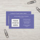 Cartes de visite personnalisables à deux faces horizontales : l'avant avec votre photo et vos informations, l'arrière avec le logo de l'entreprise et l'information. Modèle propre, simple, adapté aux entreprises ou aux entreprises grandes ou petites. Texte blanc sur un arrière - plan périwinkle.