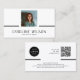 Une typographie simple et élégante photo personnalisée ajoutez votre logo et numérisation QR CODE sur le site Web ou le portefeuille carte de visite blanc et noir de base pour les dirigeants d'entreprise, consultants, agents immobiliers, comptables, avocats, conseillers juridiques, financiers, assurances ou fiscalistes.