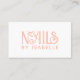 Un modèle de carte de visite technique à ongles éditable créé avec un logo de typographie, combinant la typographie avec un coeur rose encastré entre les lettres. Parfait pour un style de logo titre, suivi de votre nom.