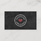Logo rustique maison sur mesure tableau noir simple Carte de visite avec un design graphique de logo circulaire personnalisé et arrière - plan de tableau noir cool dans des couleurs gris foncé tendance du charbon de bois. Créez votre propre logo d'entreprise ! Un bel outil promotionnel pour bistrots, restaurant, restauration, cafés, boulangerie, chef, amateurs de gâteaux, pâtisserie et une idée cadeau délicieuse pour les parents, la famille et les amis qui aiment la cuisine. Créez votre propre logo ou laissez ce coeur rouge chaud sur ce design modèle de texte en cercle élégant.