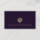Faites une impression durable avec nos Cartes de visite de logo Simple Elegant Dark Purple Gold avec typographie classique sur un arrière - plan violet riche. L'arrière comporte un emblème géométrique or frappant qui peut être remplacé par votre logo, ainsi que de l'espace pour un avertissement de l'industrie. Parfait pour les professionnels d'affaires qui cherchent à faire une impression durable.
