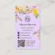 Ce charmant carte de visite à la décoration florale est décoré d'une belle aquarelle florale peinte à la main. L'avant présente un agencement époustouflant de fleurs vives dans les tons rose, jaune et orange, dressé contre un arrière - plan sobre et élégant de lavande douce. Au dos, la carte conserve son thème floral avec des accents floraux délicats, offrant un espace suffisant pour votre logo, les coordonnées, les poignées de médias sociaux et un code QR pour un accès facile à votre portefeuille ou à votre liste de prix. Le design est entièrement personnalisable, vous permettant d'ajuster les couleurs pour correspondre à l'esthétique de votre marque. Cette carte est parfaite pour les créateurs floraux qui cherchent à faire une impression durable.